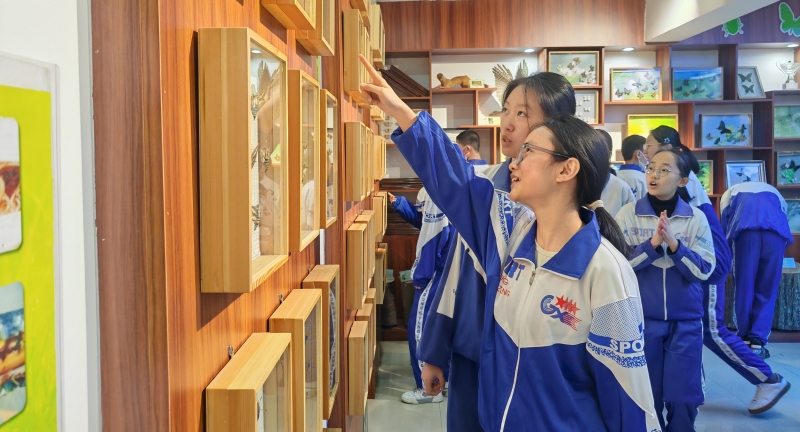 “接下來我們看到的是蝶類和蛾類,他們需要經(jīng)歷卵、幼蟲、蛹、成蟲四個(gè)階段。”在長(zhǎng)白山生物標(biāo)本室,講解員向?qū)W生們介紹了標(biāo)本室的歷史,昆蟲種類和數(shù)目、標(biāo)本的采集地等相關(guān)知識(shí)。學(xué)生們通過零距離的接觸,被種類繁多、栩栩如生的各式標(biāo)本深深吸引。