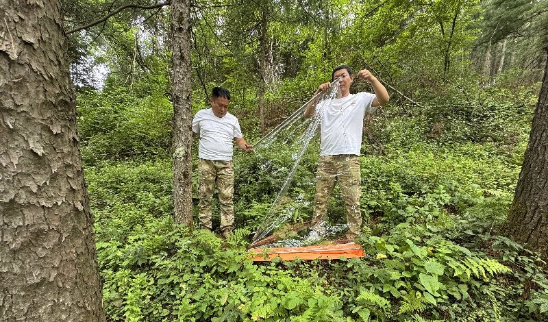 調(diào)查工作按照“分區(qū)包片、責(zé)任到人”的工作機(jī)制全面鋪開。在調(diào)查方式上,工作人員創(chuàng)新采用“無人機(jī)航拍+地面踏查+誘捕監(jiān)測”的立體化排查模式,確保階段任務(wù)高效推進(jìn)。針對高海拔陡坡、偏遠(yuǎn)山區(qū)等人工難以到達(dá)的區(qū)域,利用無人機(jī)搭載高清攝像頭進(jìn)行航拍,通過影像分析初步判斷是否存在蟲害跡象。在地面踏查過程中,調(diào)查人員攜帶蟲情調(diào)查工具包,沿著預(yù)設(shè)線路仔細(xì)查看松樹樹干、枝條,對發(fā)現(xiàn)的蛀孔、蟲糞等痕跡及時記錄,運(yùn)用剝皮法、伐木解析法深入了解害蟲危害程度,并采集不同蟲態(tài)的害蟲標(biāo)本。同時,在林區(qū)健康小班內(nèi)通過布設(shè)誘捕器、飛行阻隔器及餌木誘集等方式進(jìn)行廣譜監(jiān)測,掌握松林內(nèi)鉆蛀類害蟲的分布情況。